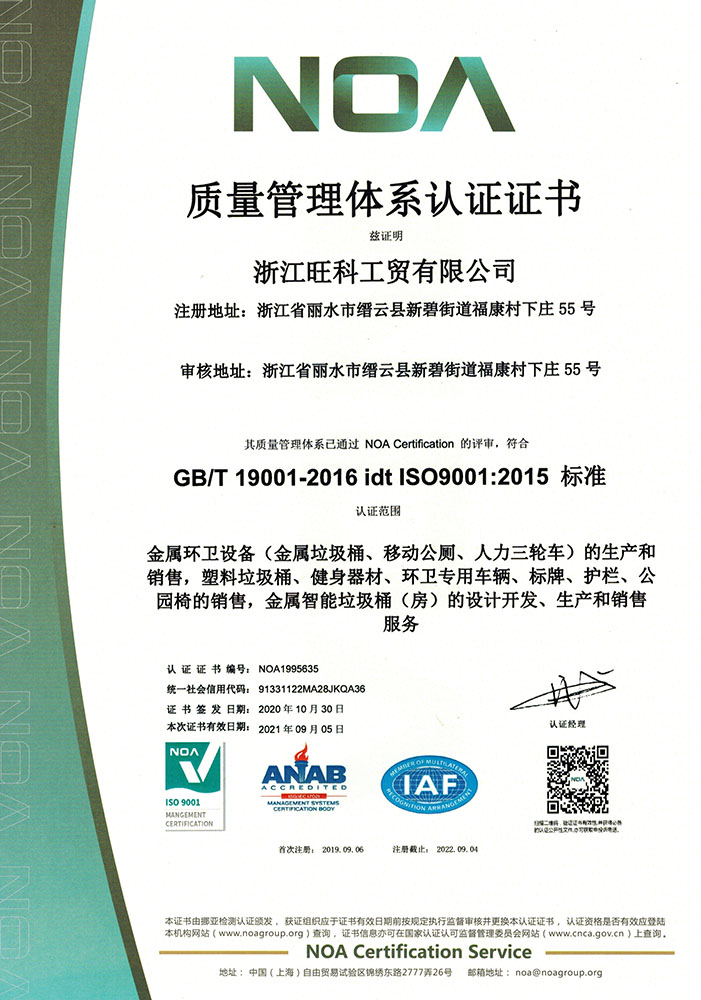 浙江旺科工貿有限公司(原國清桶業)始創于1998年,座落于交通便利、風光秀麗、經濟繁榮,素有“百工之鄉”、“中國科技五金城”美稱的江南古城---永康。是一家集研發、生產、銷售與服務為一體的現代化企業,現公司占地面積16000多平方米,廠房建筑面積20000余平方米。國清桶業專業生產環保設備、垃圾桶、垃圾車、宣傳窗、沖孔垃圾桶、清潔設備、公共休閑椅、崗亭、生態廁所、體育健身器材、雕塑、書寫白板、綠板、黑板、校具、園林工具、塑料制品、五金制品等。